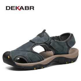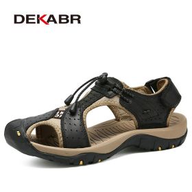 Mens Outdoor Trekking Sandals Summer Breathable Flat Light Fashion Beach Shoes Genuine Leather Luxury Men Sandals (Color: 01 Dark Brown, size: 6.5)